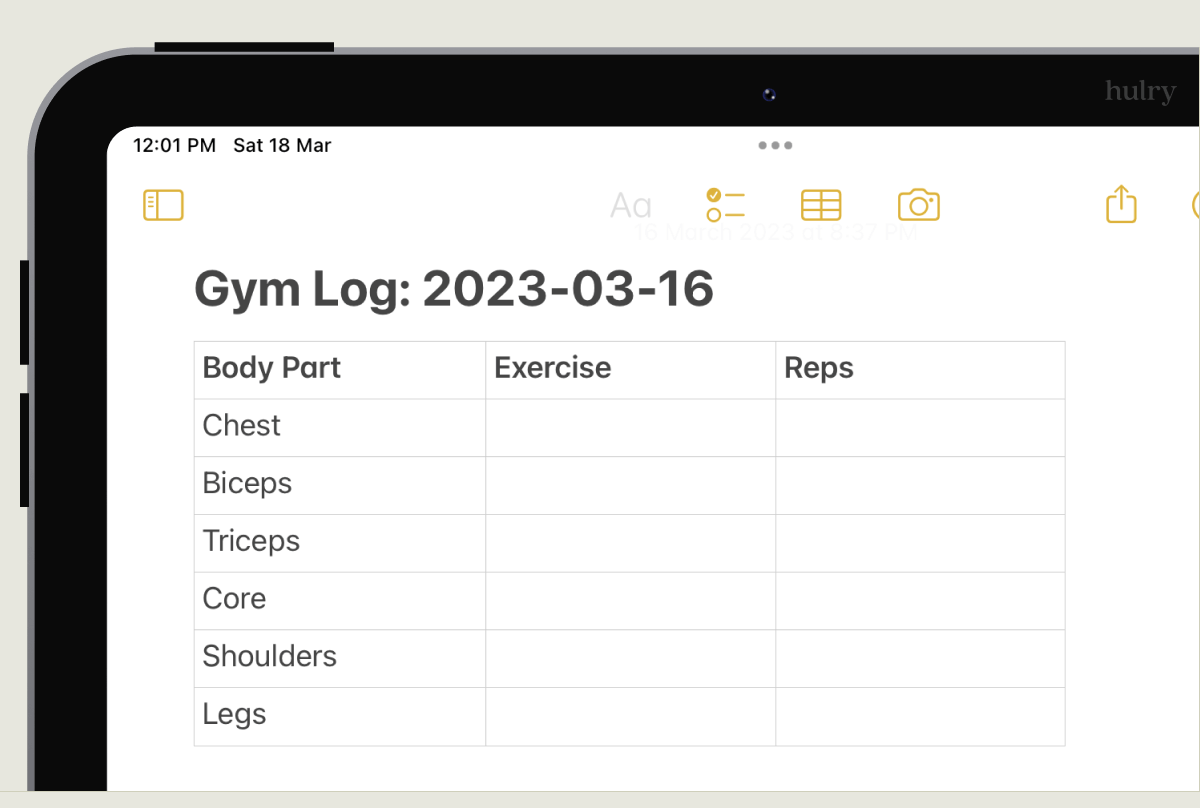Apart from daily journaling, another everyday use of personal templates can be recording weight training sessions.