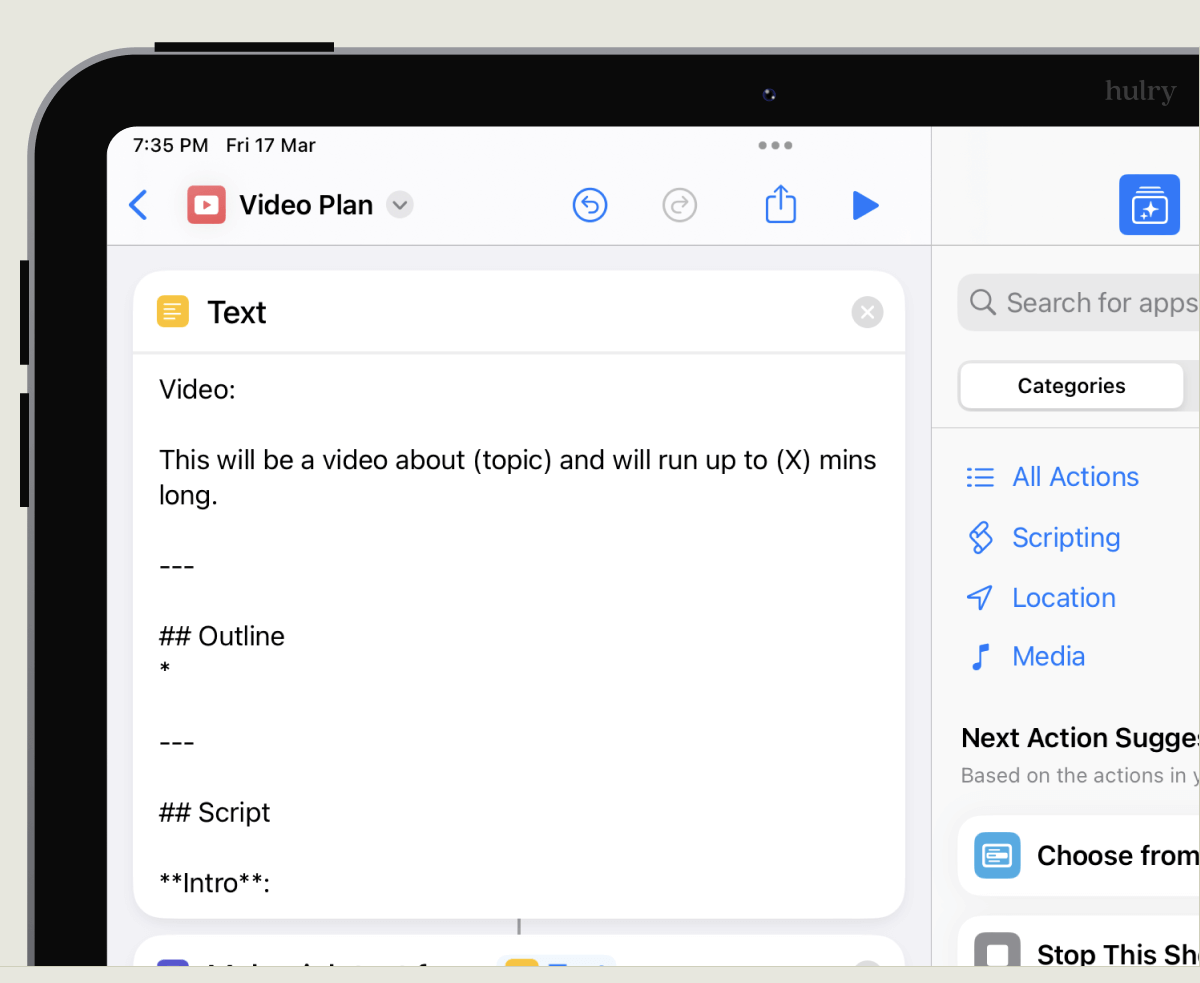 With the template structure ready, let's create a new shortcut on the Shortcuts app.