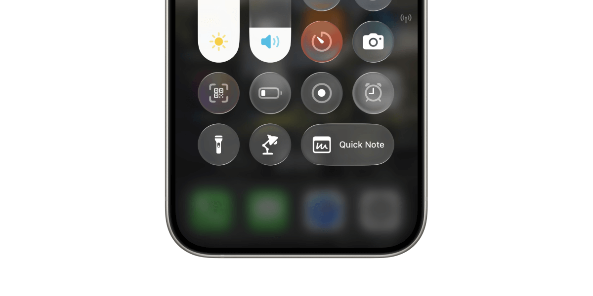 On an iPhone or iPad, you can use the Quick Note shortcut in the Control Center to quickly create a new note by dragging down the Control Center and tapping on the Quick Note option: