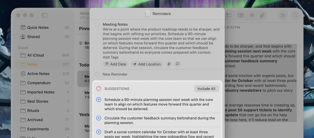 So, instead of cramming ideas and links on the tiny notes field of a task in Reminders, I have this richly formatted note in the Notes app linked to an action item in Reminders.