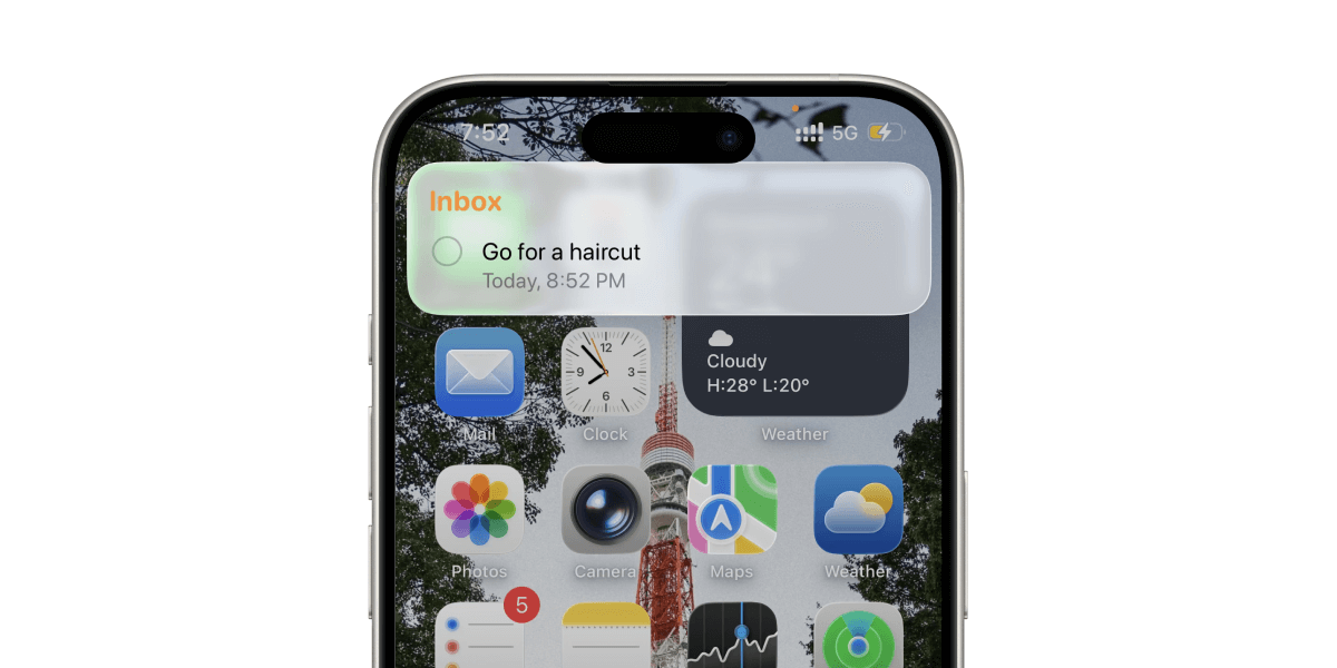 The same control is available as a lockscreen control, where you can long-press the new reminder control on your iPhone's lockscreen to jot down a new task: