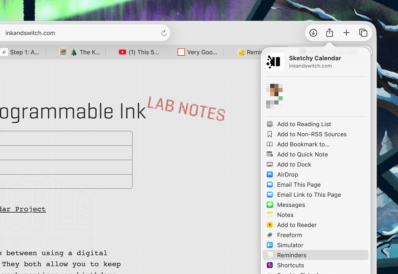 To make this process work, I collect articles and apps in Reminders as I browse the internet by using the browser's Share option to share a link to the web page with the Reminders app:
