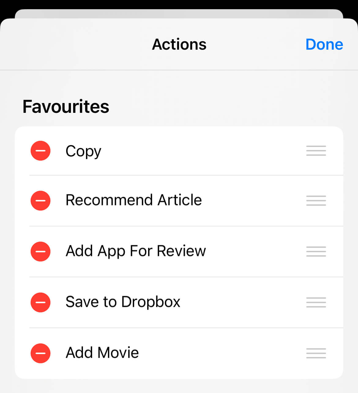 You can also edit your share actions to add your new shortcut to Favourites for easy access: