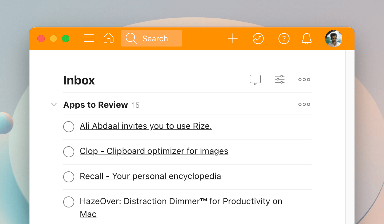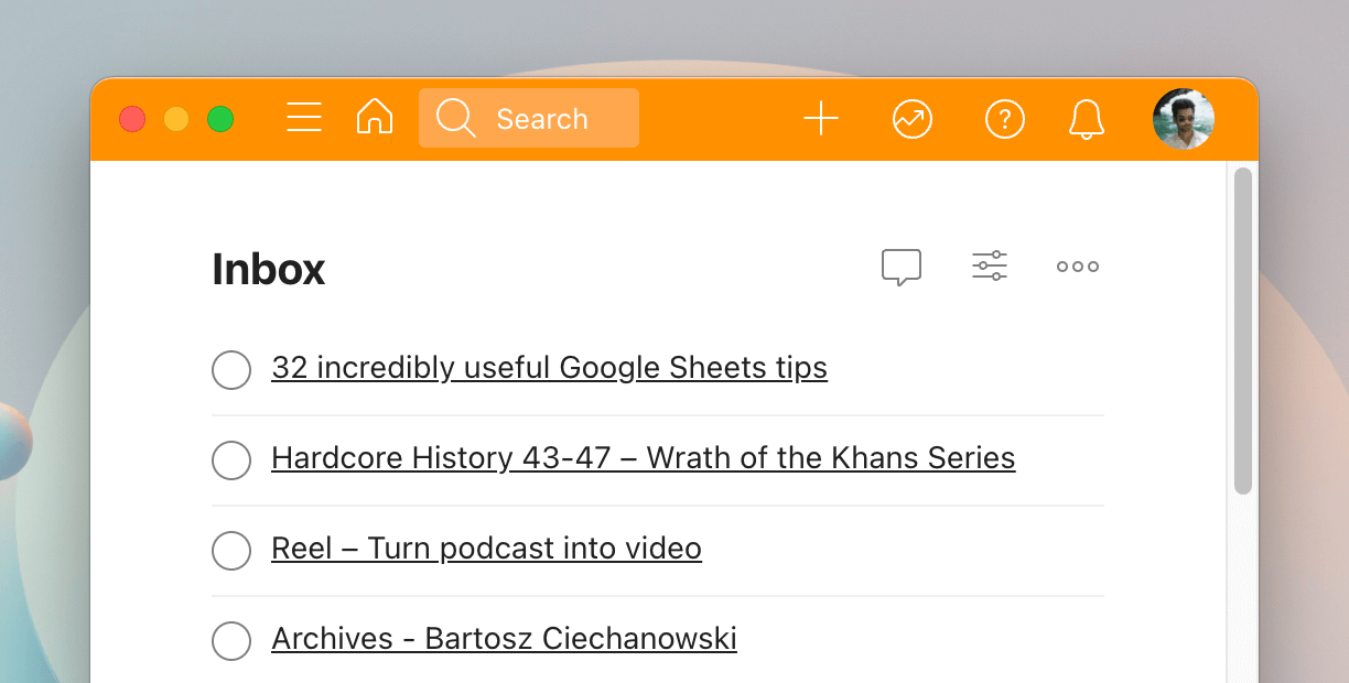 The easiest way to collect ideas and resources on a todo app is to save everything in your inbox.
