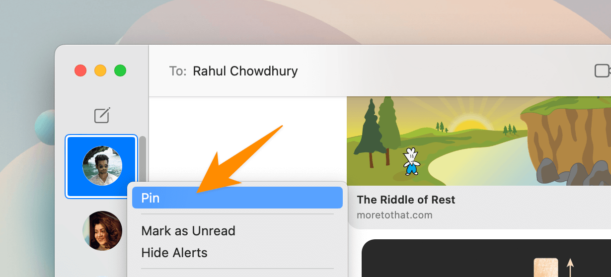 And, once you have a chat going, you can pin it to the top for easy access anytime you want to save something: