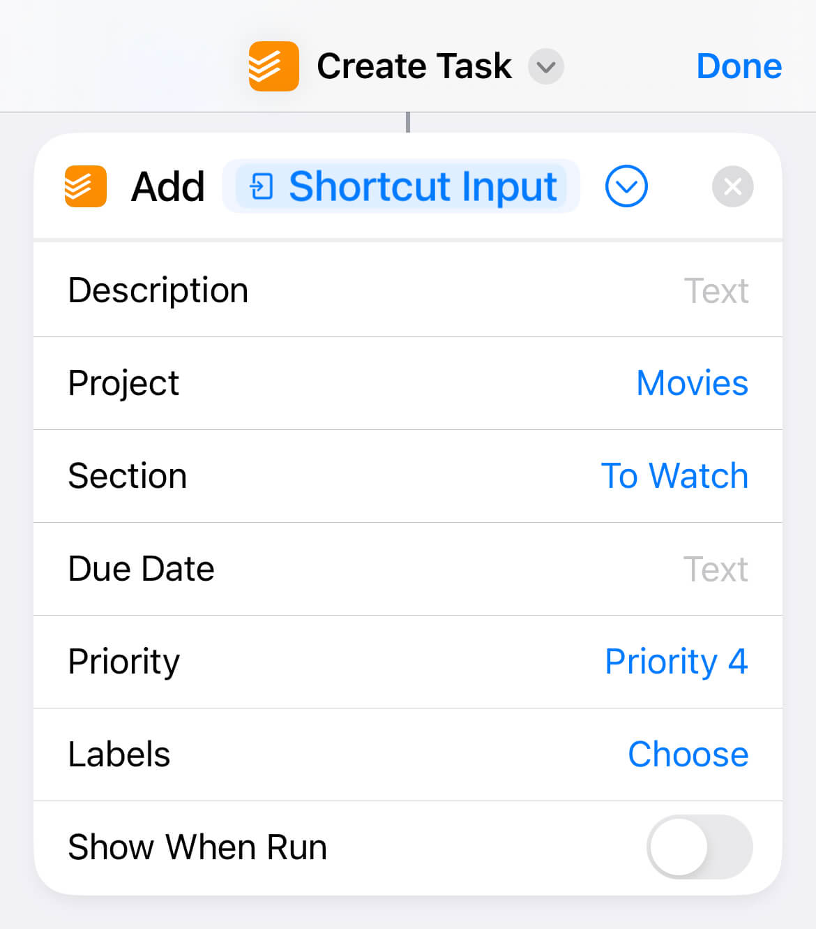 To help you get started with the Shortcuts iOS app, here's how you can create a shortcut that saves movie links from Safari to a Todoist project: