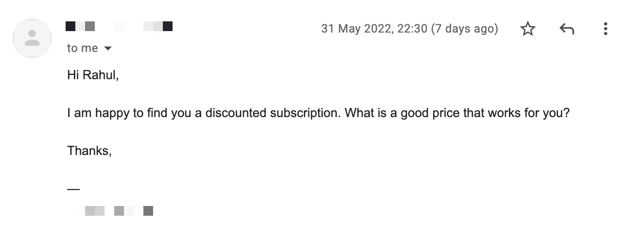 I replied to their email with a price quote of $25/year, which I thought was fair.