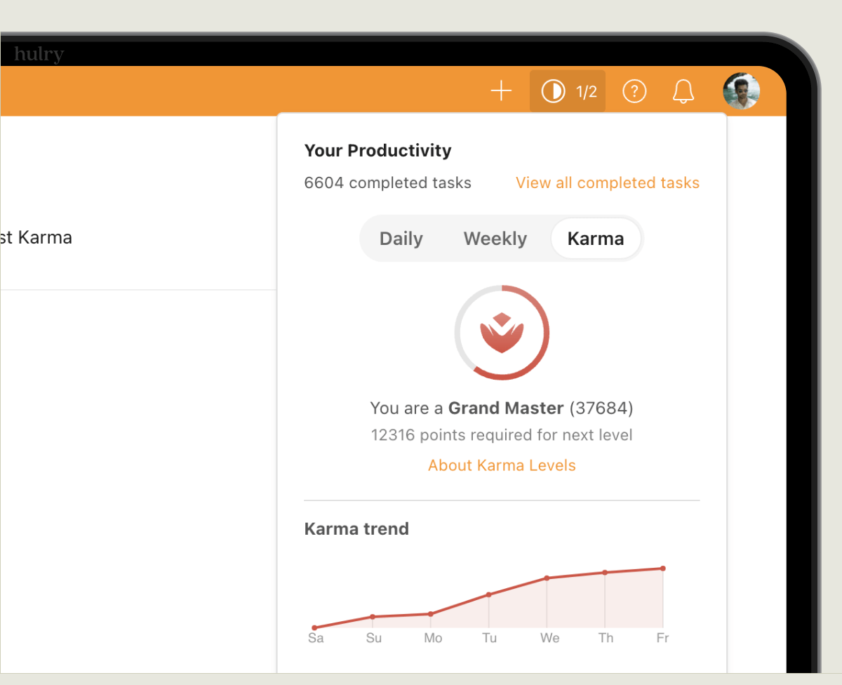 It's a scoring system that earns you karma points every time you check off a task from your list, meet your daily goal and more.