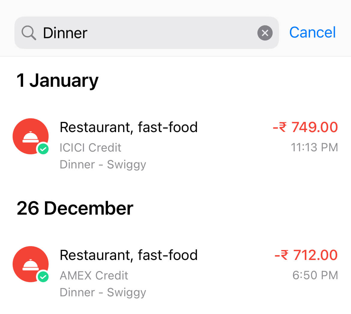 I aim to record everything as and when it happens because it reduces the burden of adding too many transactions at once, but when I miss adding them at the moment, I use the above trick to add all unrecorded expenses before bedtime.