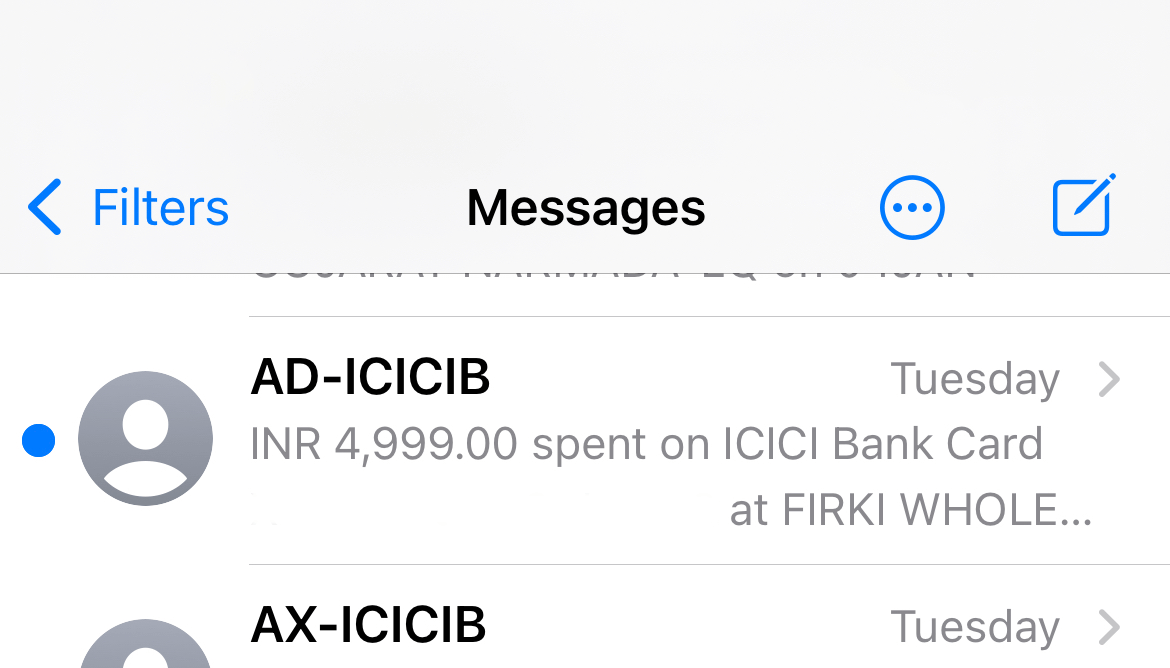 A simple trick to ensure you're not missing out on any transaction is to keep texts or other messages from your bank for each transaction unread, like this: