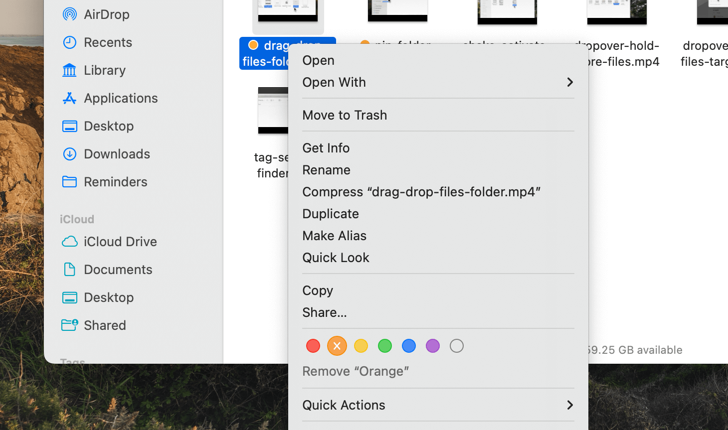 For example, using Dropover, you can select a file and shake it to activate a floating shelf where you can then drag and drop your selected files onto the shelf to hold them for later: