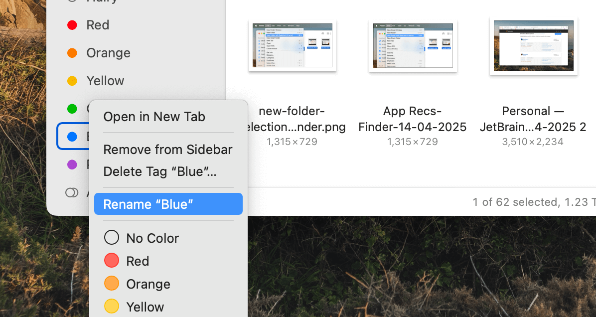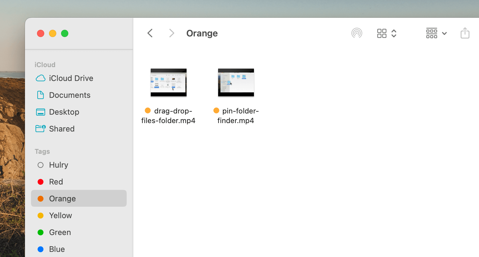 Once done, clicking on a coloured tag on the sidebar shows every file we have tagged with the colour: