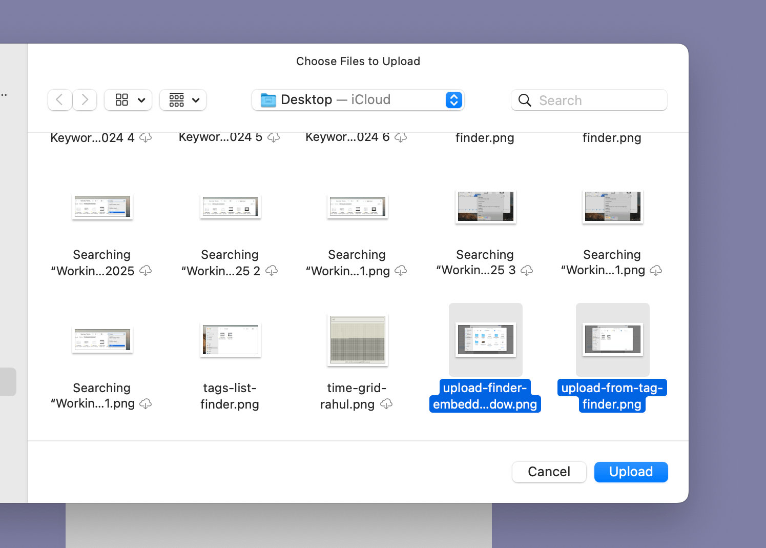 With this approach, you get a scoped view of all the files you need to send to someone or upload across folders in one place.