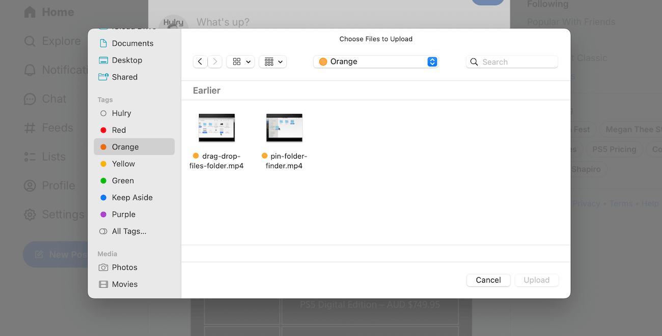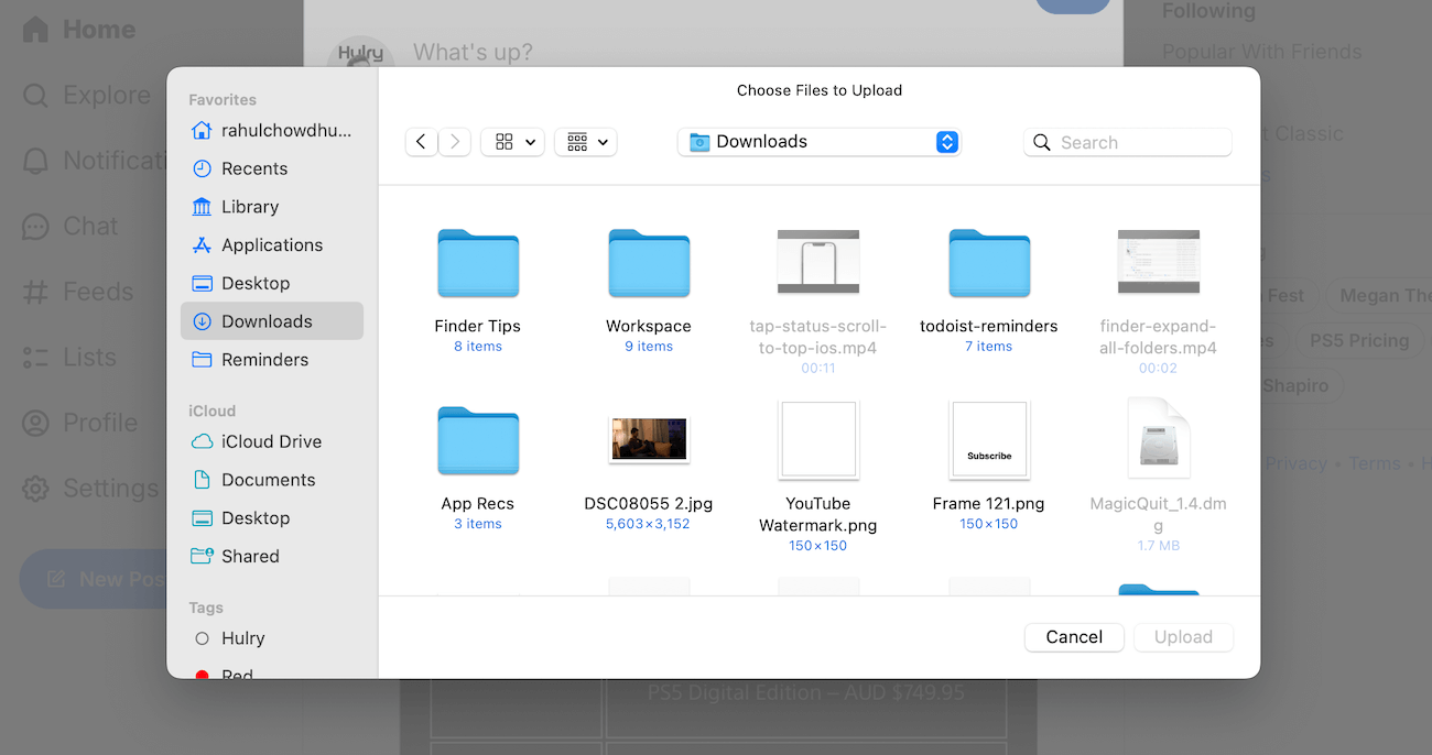 Whenever we open a regular browser upload window, it's an embedded Finder window that helps us choose a file from our system: