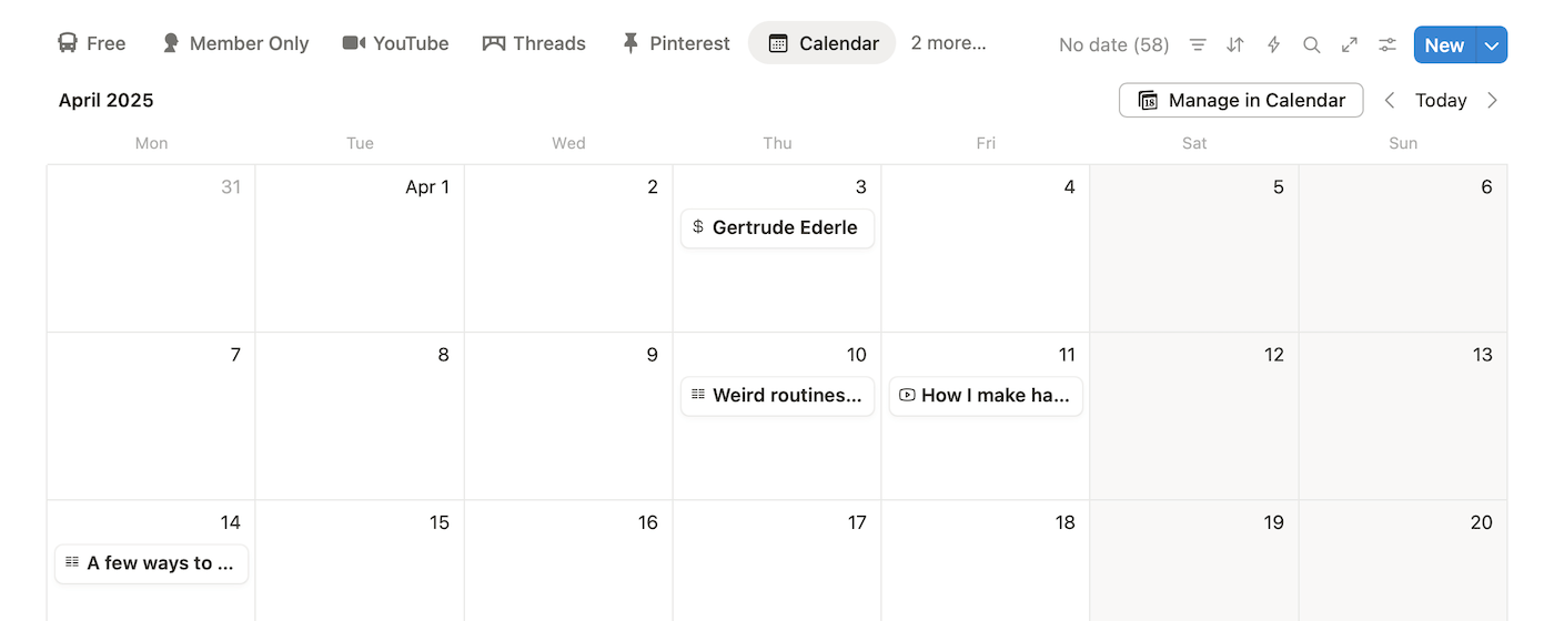But with Notion, I get a fantastic overview of what I'm planning to publish, across platforms, in one place.