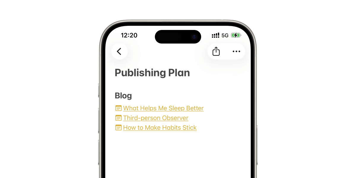 Sure, I could've made a list on Apple Notes and linked these individual article idea notes from the main hub like this: