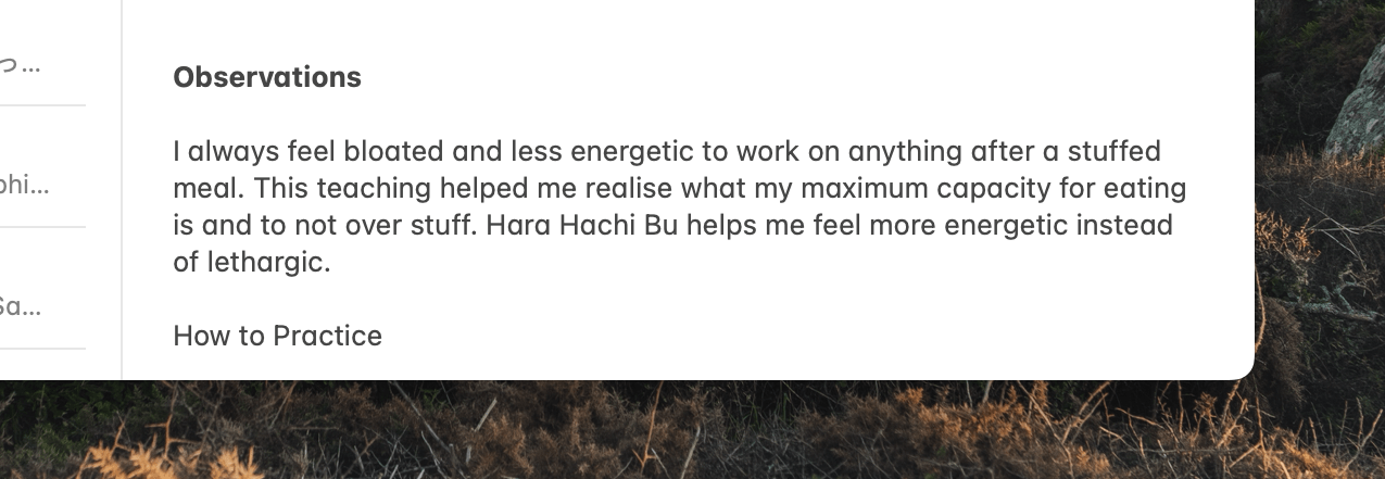 Now, as I experimented with each philosophy or concept and tried them in my life, I added my observations at the end of each note: